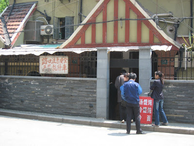 Gongying Hundun is inconvenient unless you work near the American Center or have a weekday free - it's on 68 Yuyuan Lu, the far Eastern end of the street, across the street from a Kedi convenience store, and basically around the corner from Malone's. That's pretty central, but it's only open on weekdays from 11-1:30! Instead of a proper restaurant or even a proper stand, it operates out of the side of an old-fashioned apartment building. It would be easy to miss except that there's often a small line leading outside: